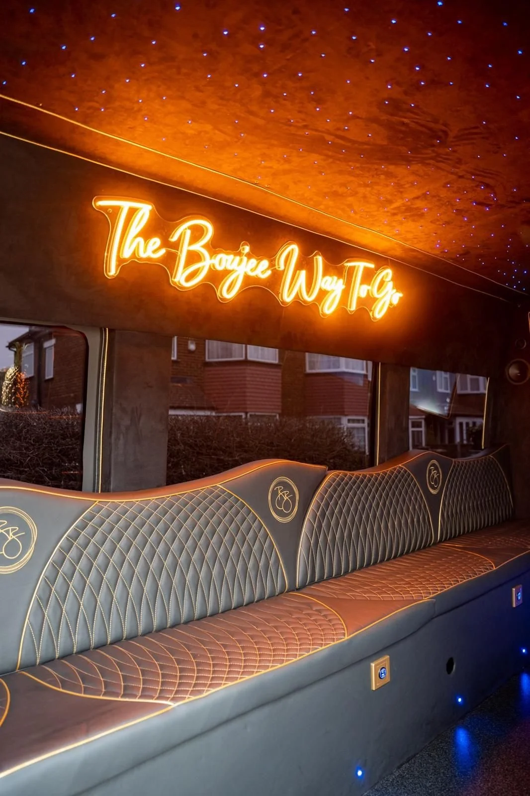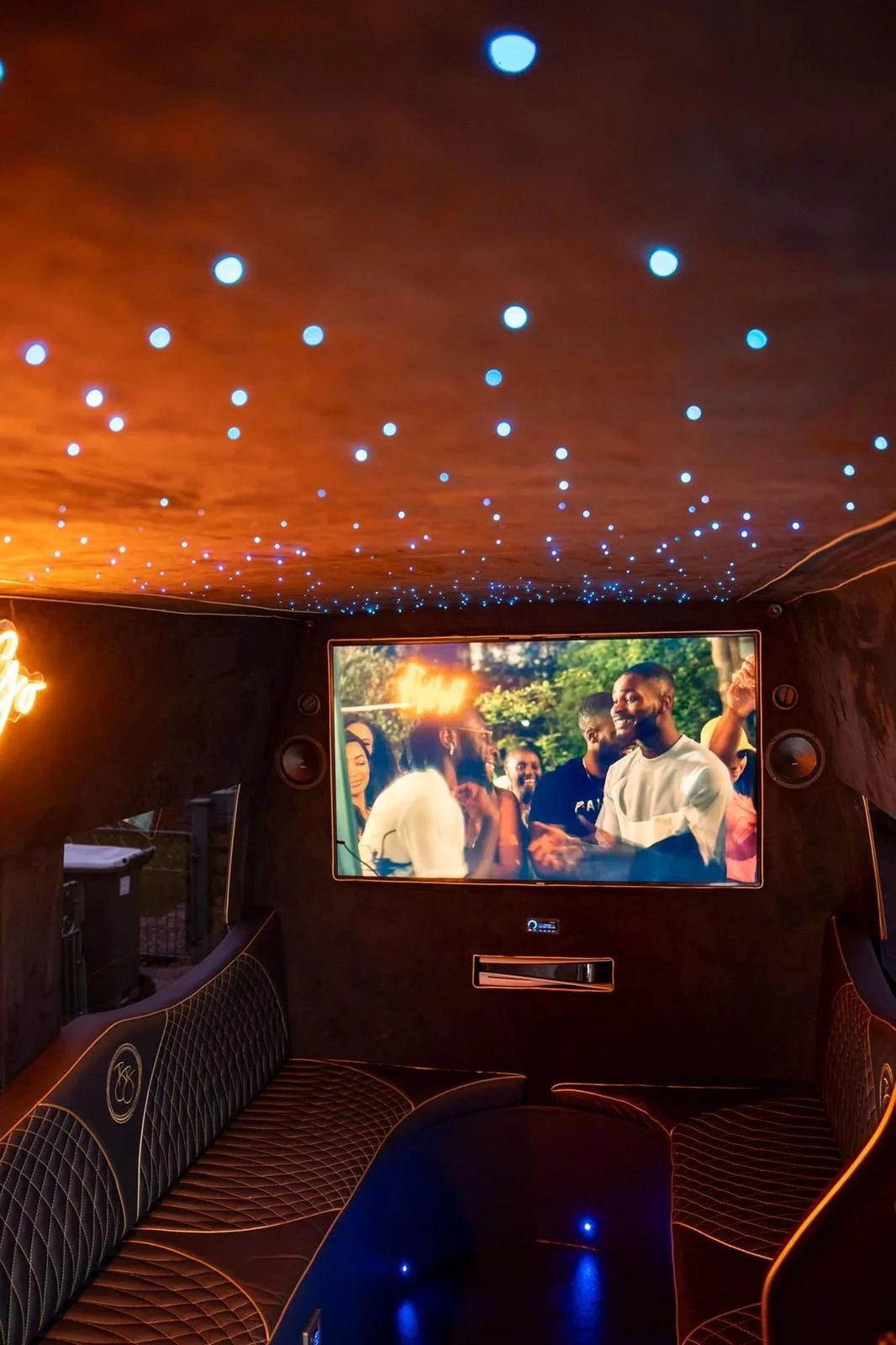 Designed to be as boujee as possible, this conversion is packed with black and gold finishes, a built-in fridge, TV, PS5, and premium audio. The result? A head-turning party bus that’s always in demand.